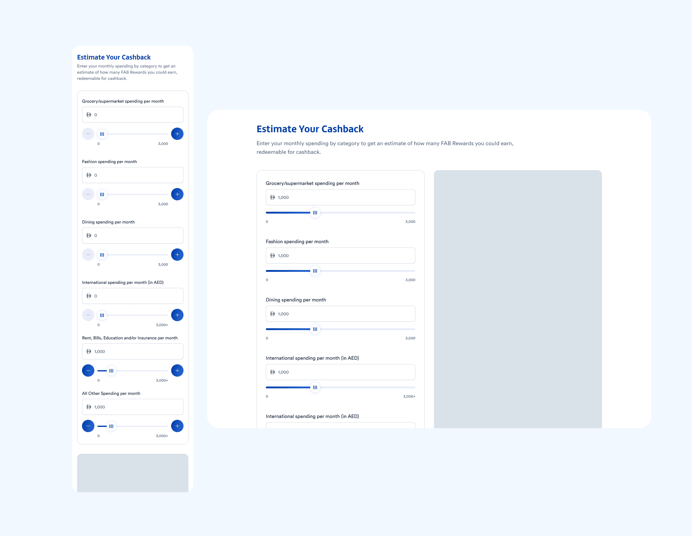 The FAB cashback card is the highest-performing card in the portfolio and the reward structure most commonly held by existing customers. Starting here meant we could validate the calculator concept on the most familiar, highest-traffic product first - giving us a proven foundation before extending the approach to co-branded cards with more complex reward mechanics.