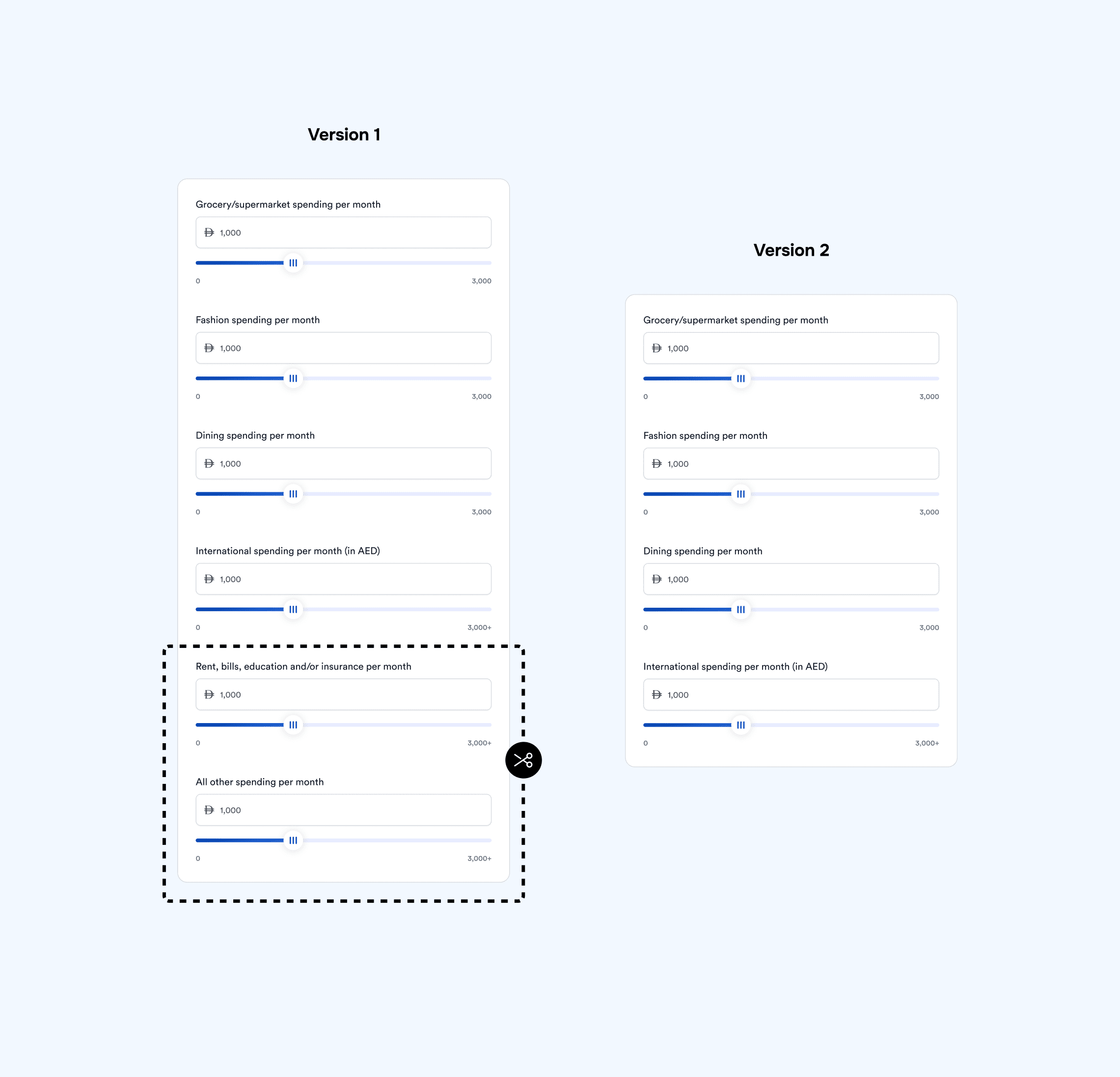 Entering large spending values in low-reward categories made the card appear less valuable. During testing, some users entered high rent amounts (AED 9,000–10,000). Because rent earned only 0.15% cashback, it overshadowed higher-reward categories and reduced the perceived value of the card.