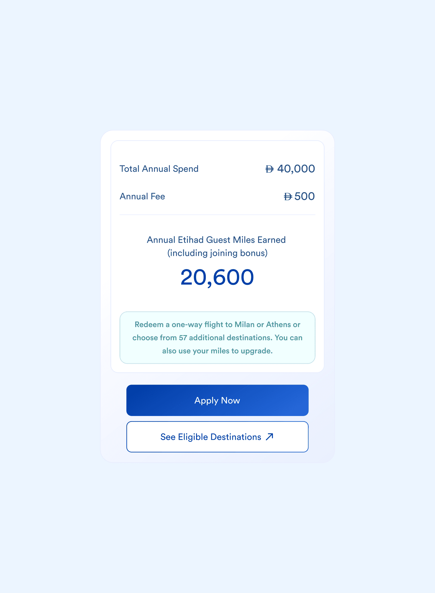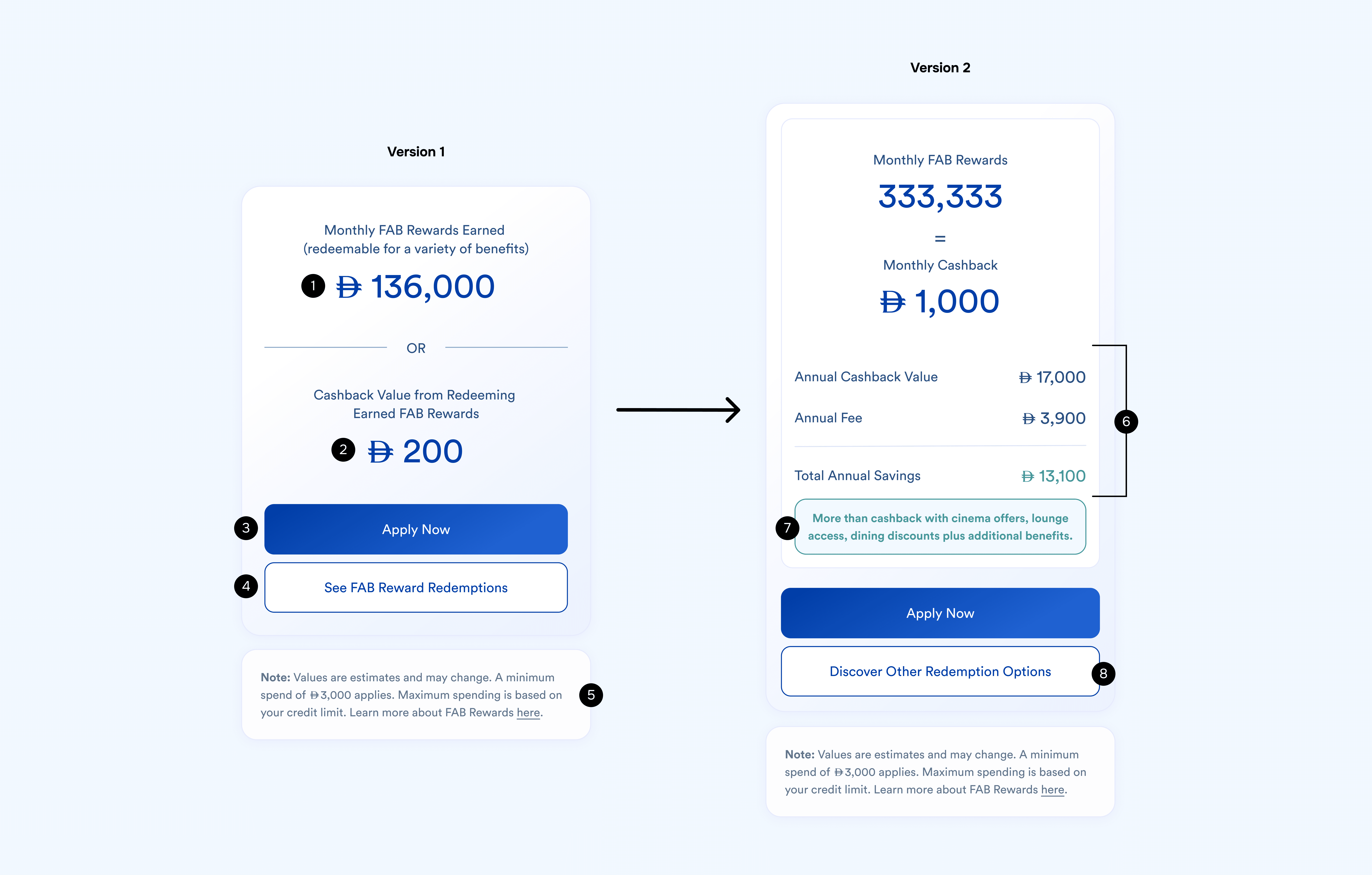 A second iteration, post internal discussions and a design critique, introduced an additional layer to help customers understand the card value relative to its annual fee.