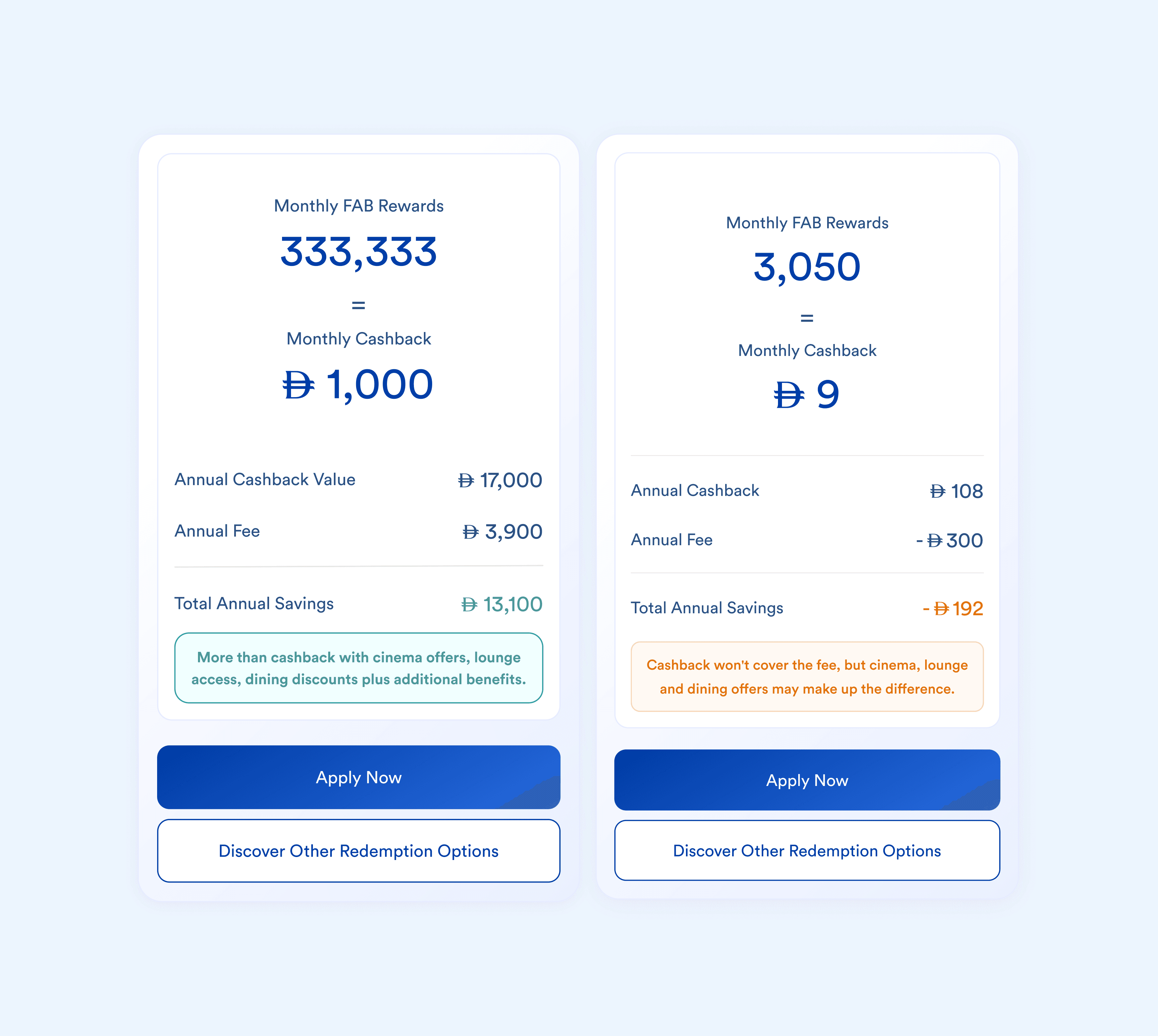 "You're giving me a cashback credit card. I barely get around 600 dirham a year. And then you are giving me 600 dirham annual fees. So what's the point?"