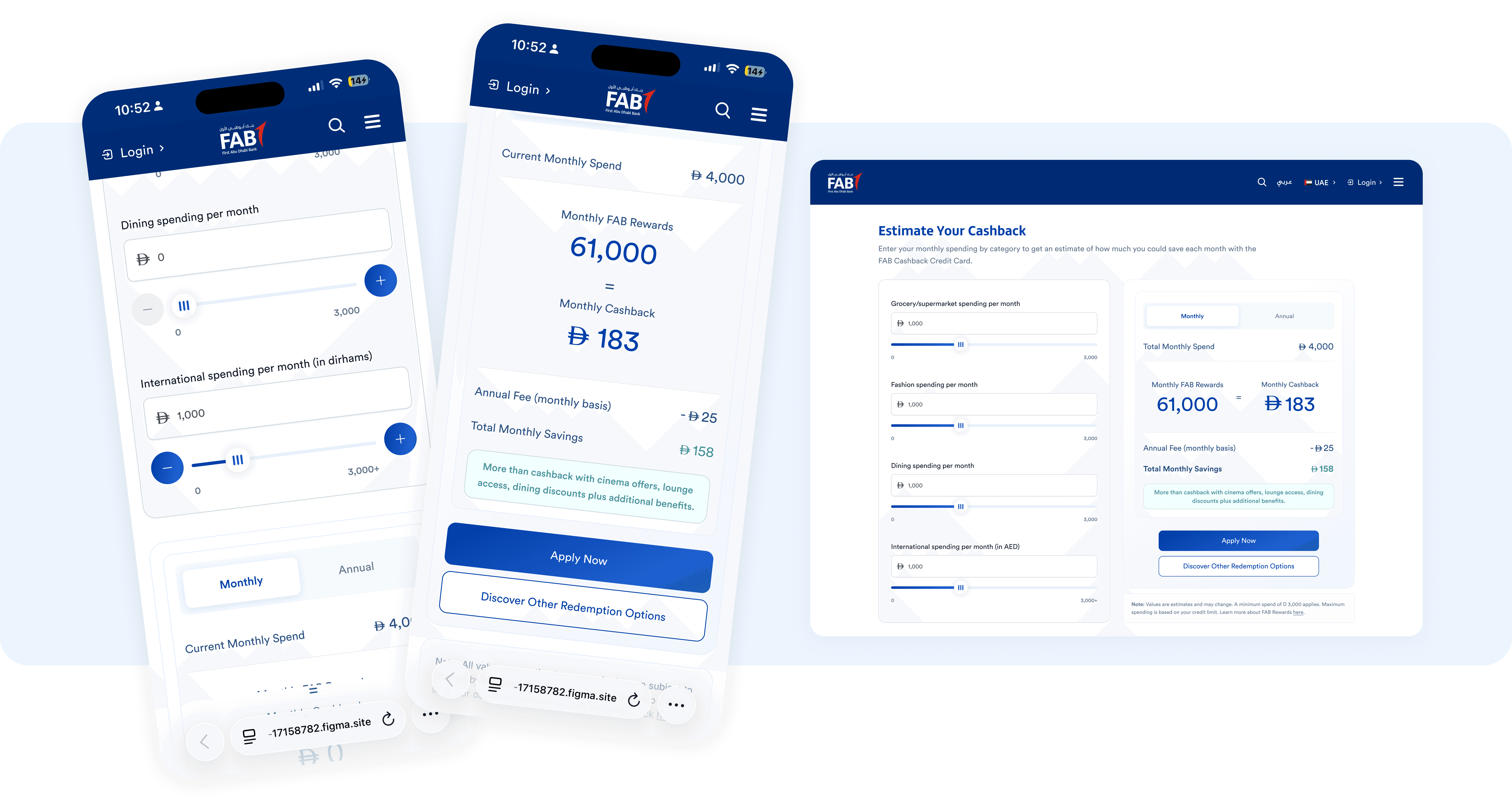 To understand how other financial institutions communicate reward value, we reviewed calculators from several regional banks including HSBC, Liv Bank, Emirates Islamic, and ADCB.