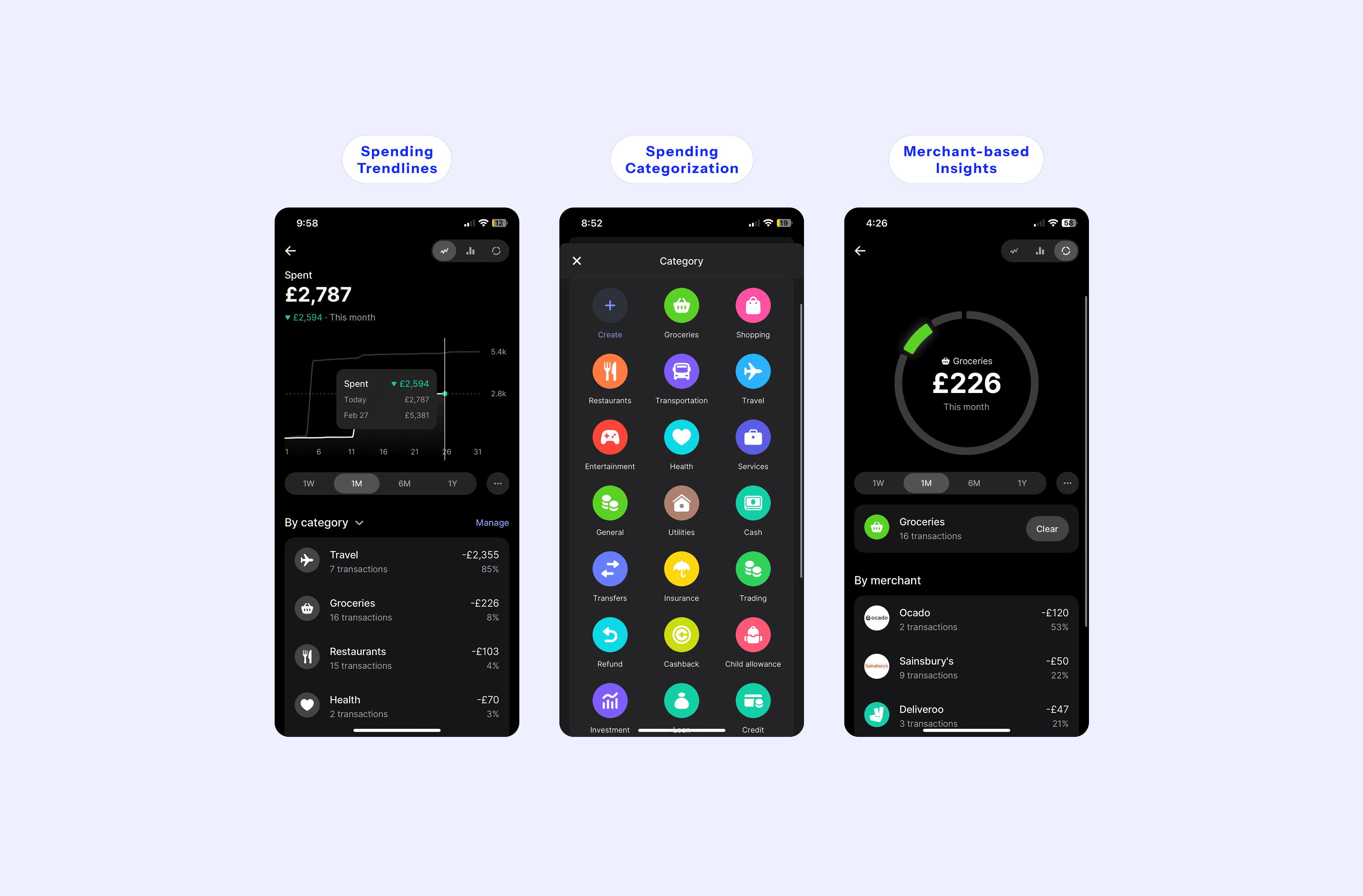 We reviewed competitors including Monzo, Chase, and Wise to understand how others approach spending insights. We found that competitors track and present. They don’t teach or guide.
