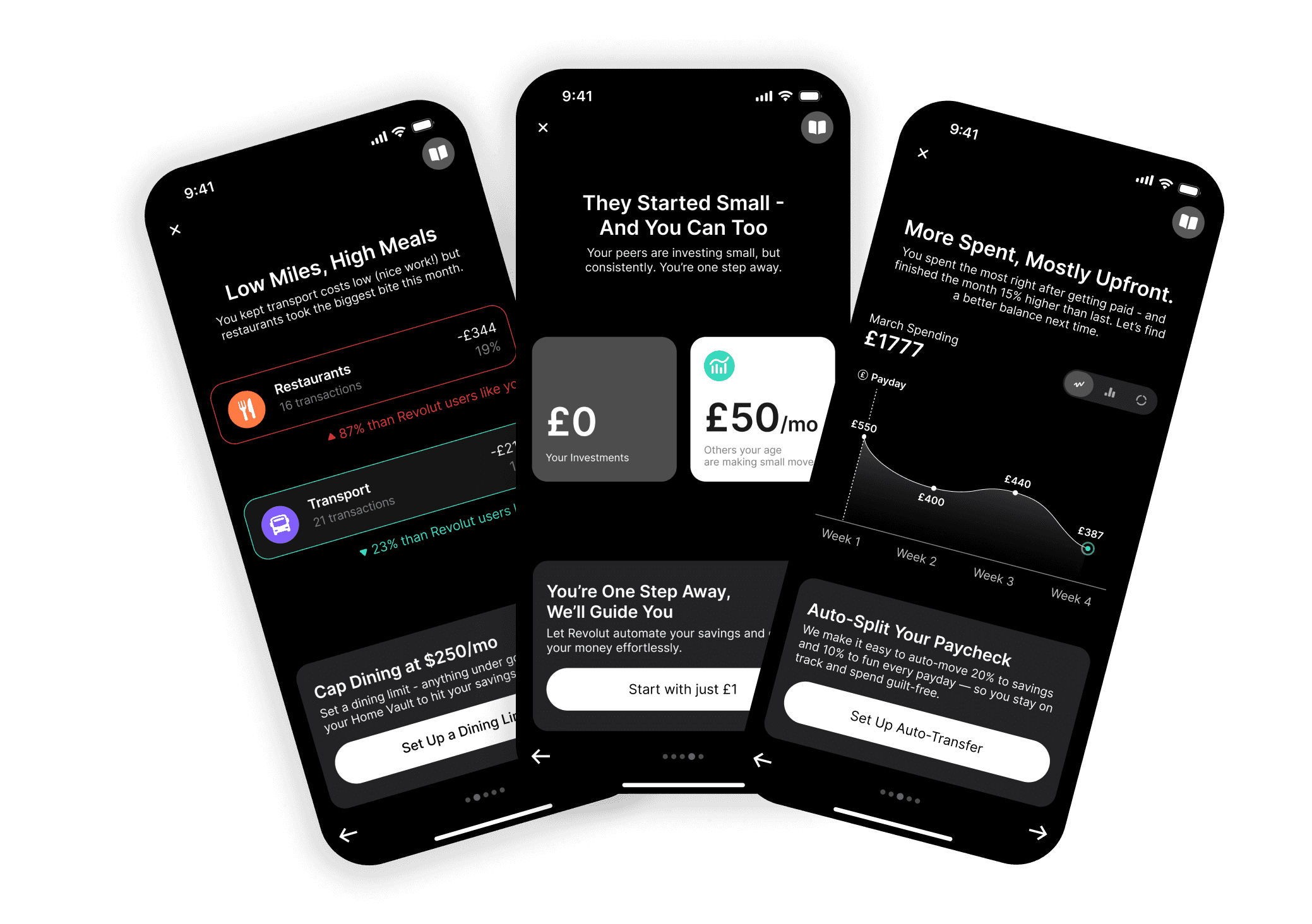 Clear, low-commitment actions tied directly to Revolut features